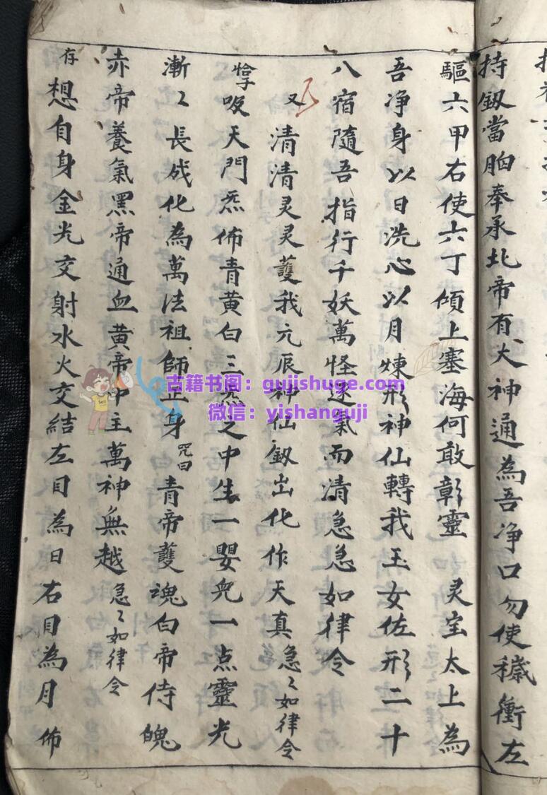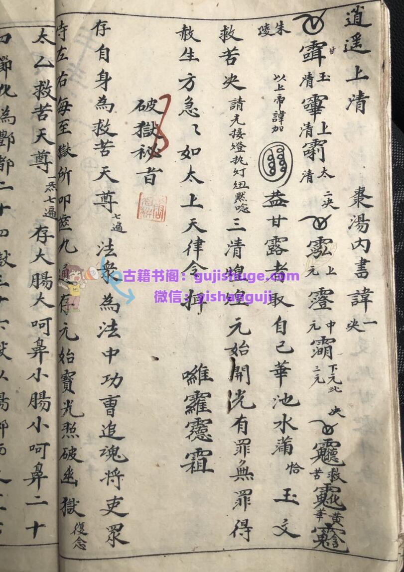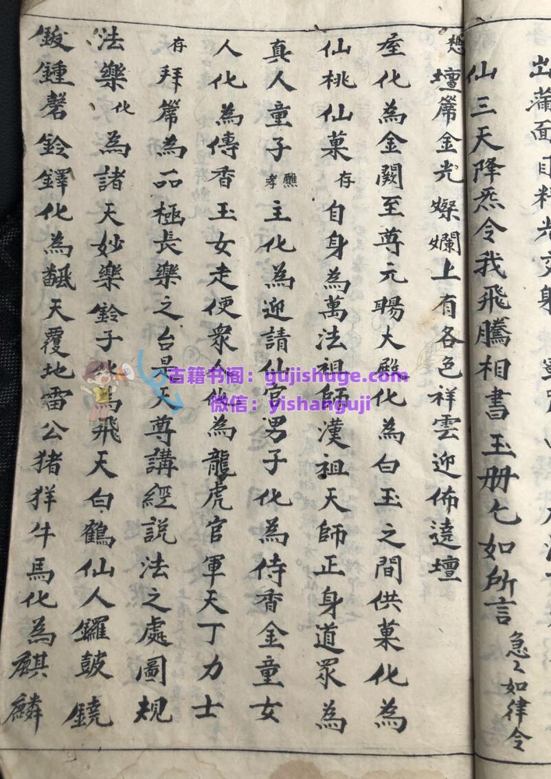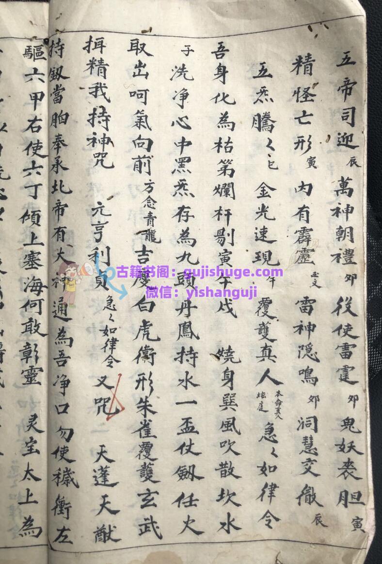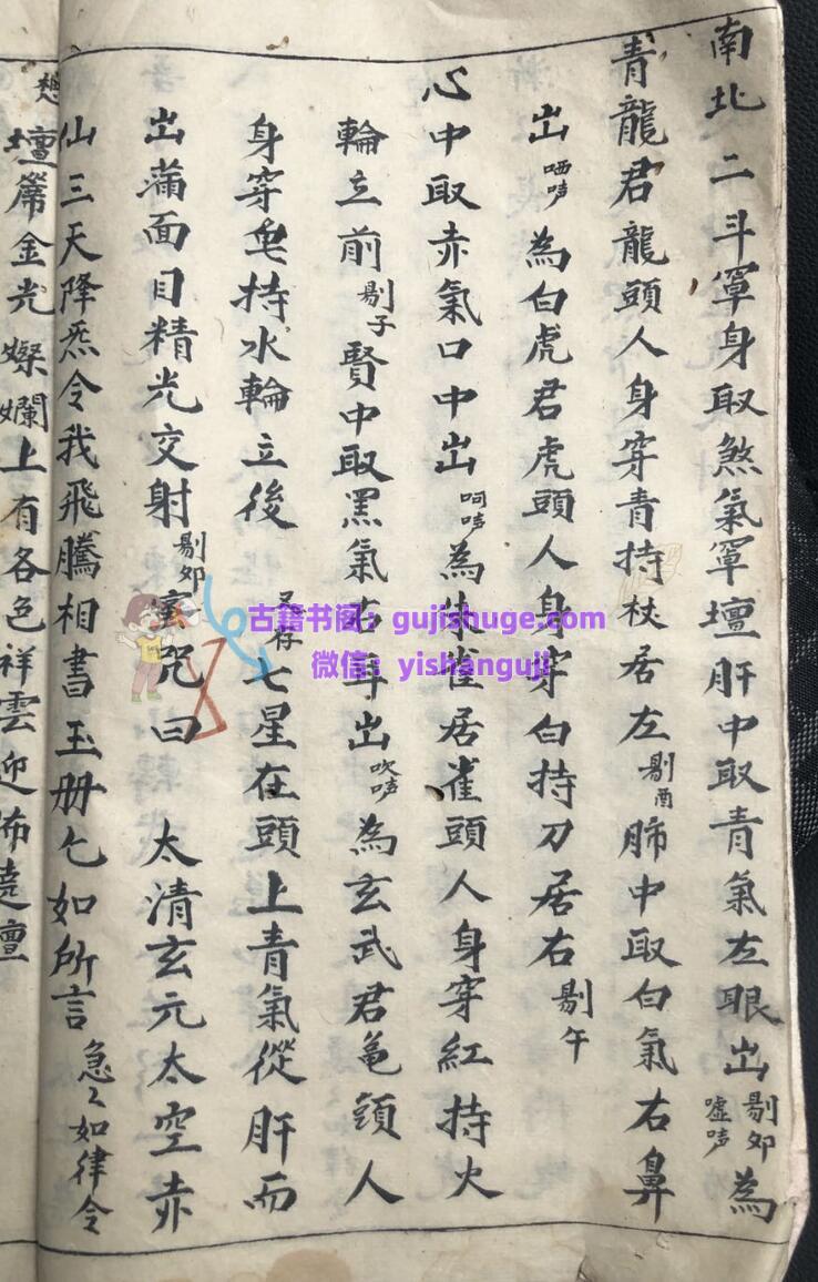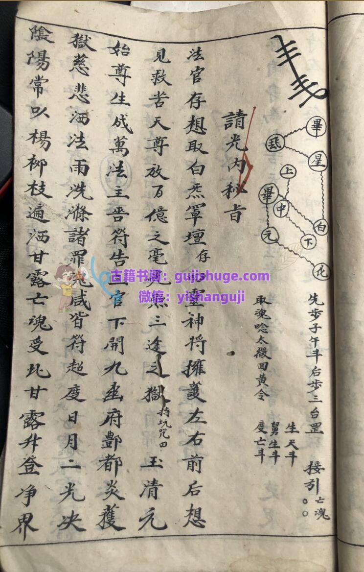 《道合天地玄机秘旨》古籍手抄本一册,共59面,民国十七年抄录。内容包含:初启座宫妙法、步三台罡、发牒变坛、护身罡、步风火罡、请圣变坛、扬旙秘旨、午朝颁赦秘旨、请光内秘旨、破狱秘旨、召亡秘诀、歇驾秘旨、迎鸾秘诀、禁坛秘诀、散坛折禁秘旨、安谢秘诀、道色天地玄机金麟髓三朝行道秘诀真旨、晚朝拜表章秘旨口诀、开童表咒、玄堂感应咒、送圣秘诀