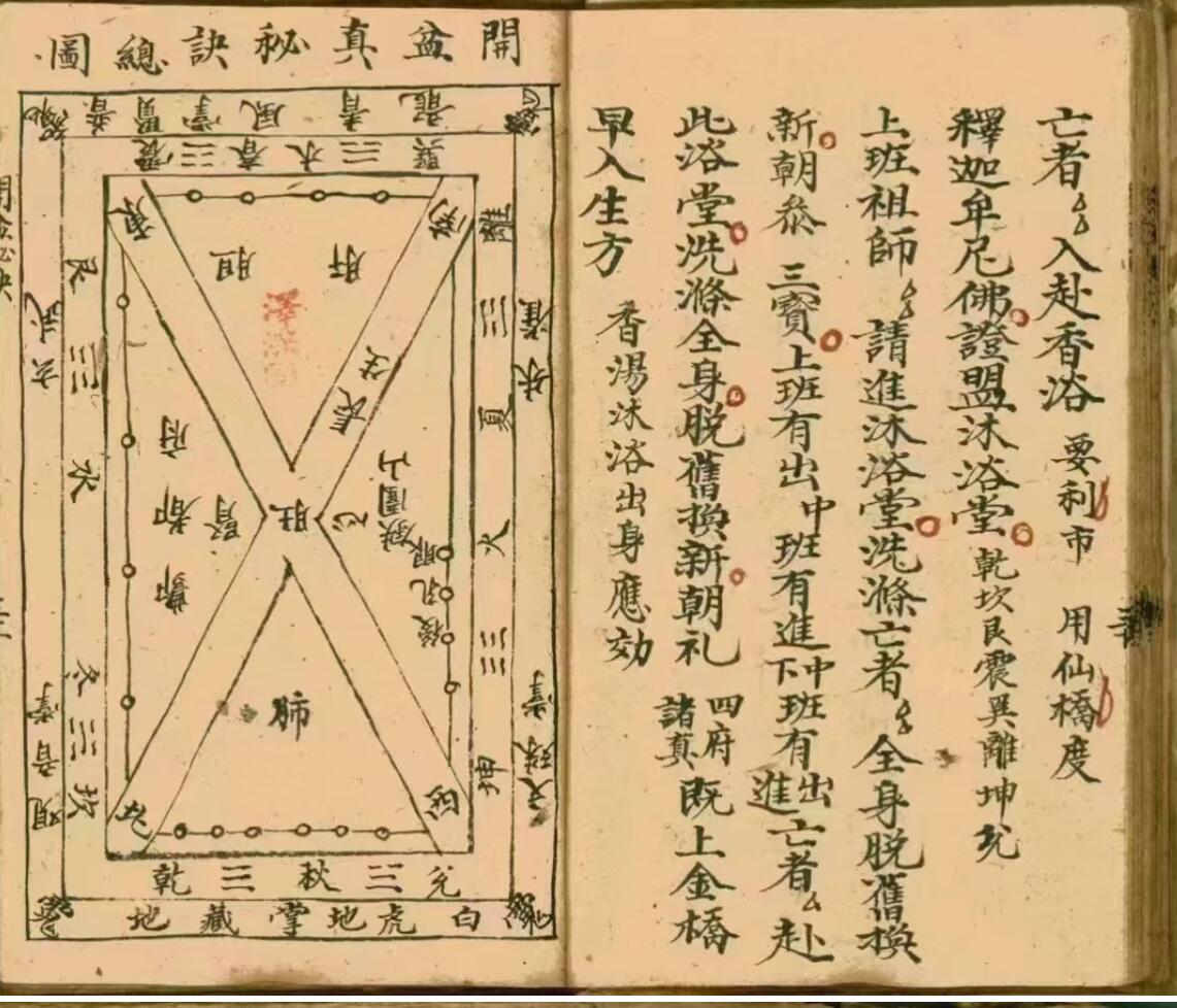 内容:谢土口诀,变符镇宅,让关解煞口诀,在坛请宗师出门藏身口诀,请经启建,安五皇天皇,启经变水口诀,具三清化身三佛讳,门首安土地,法食讳,法事起鼓,悬幡,穿法衣讳,安五方天王口诀,破狱一宗,接锡杖,道走法,破狱锡杖内诀,白牛路真法,引魂童子诀,开盆真秘诀总图,破狱破盆走法,路烛讳,变米讳,变斋讳,变米碗讳,化财讳,化财口诀,收风,倒幡,人有十二部真经,勅水,拜塔秘诀,断伤口诀,断伤符,断精一段,断邪一段,解猫鬼牒,归空秘密,狮子口图,养命保身法,三教同归一图,三教真密等。