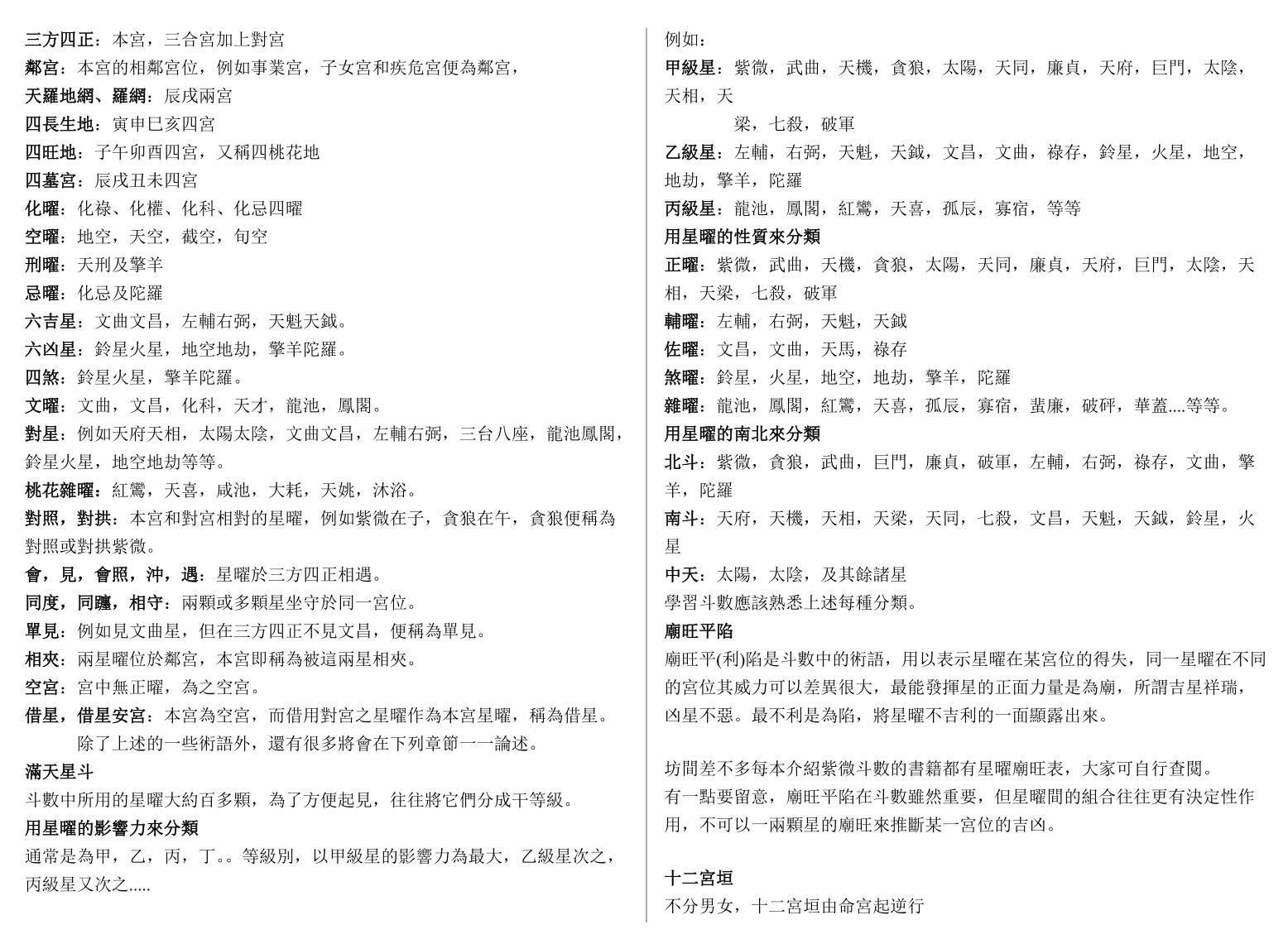 星曜分类:紫微斗数的星曜大约百多颗,为了方便起见,往往将它们分成等级、性质等不同类别,如甲、乙、丙等各级星曜,以及正曜、辅曜、佐曜、煞曜、杂曜等不同性质的星曜。