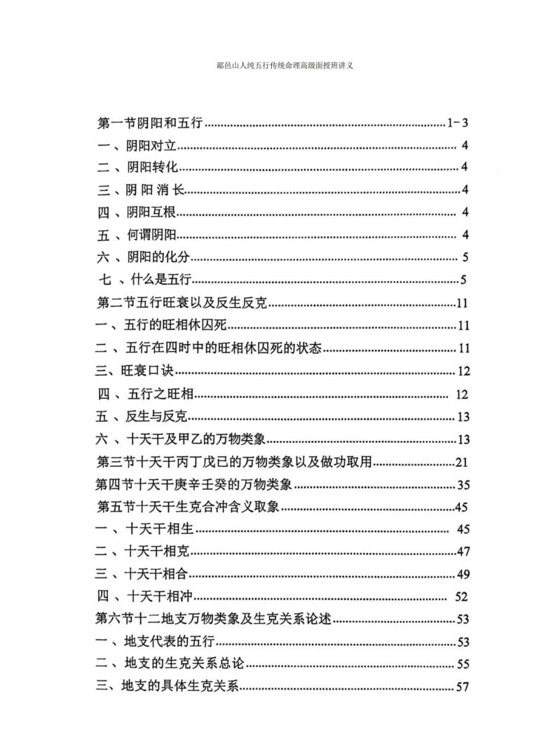 鄗邑山人《纯五行传统命理高级面授班讲义》