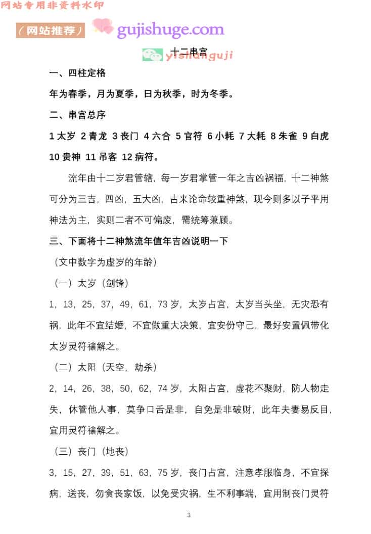 3. 十二神煞流年值年吉凶说明