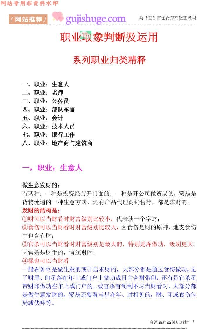 xzb2100718 盲派命理高级班教材–系列职业归类精释91页.pdf