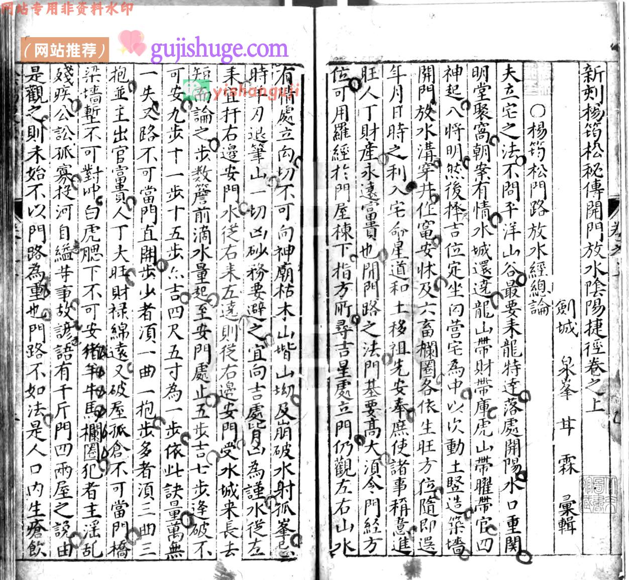 新刻杨筠松秘传开门放水阴阳捷径,共二卷,明.甘霖辑,160多单页。